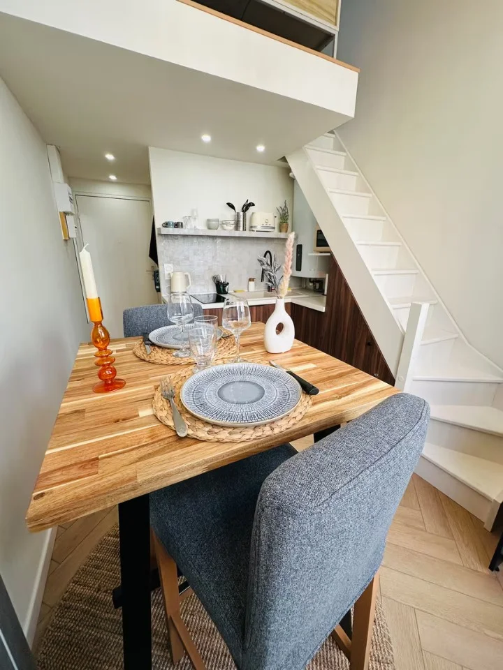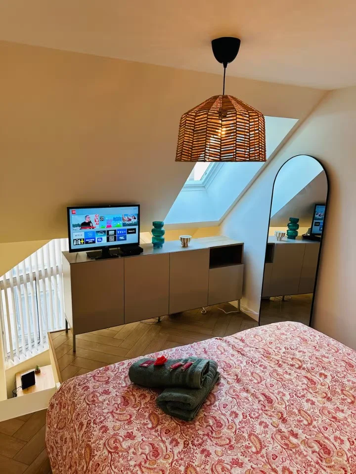 Bienvenue dans ce magnifique duplex au style raffiné, idéalement situé, au pieds de la gare de Rennes. Que vous soyez en déplacement professionnel, en escapade romantique ou en visite touristique, ce logement vous offre tout le confort nécessaire pour un séjour parfait