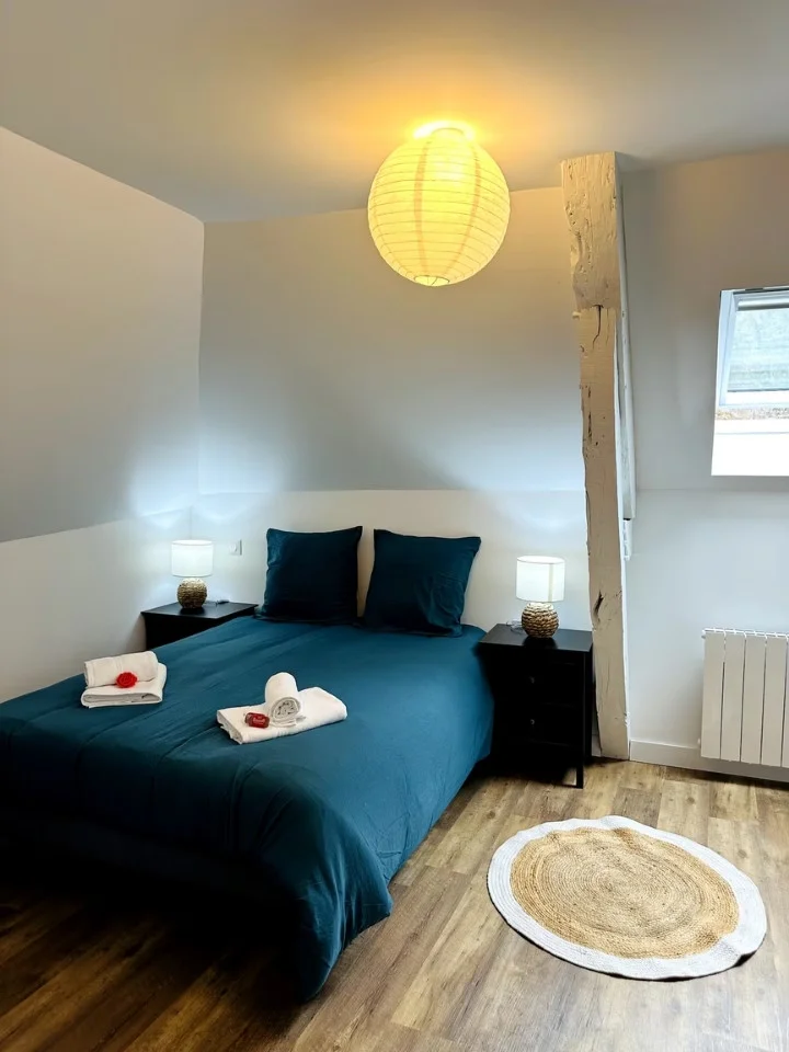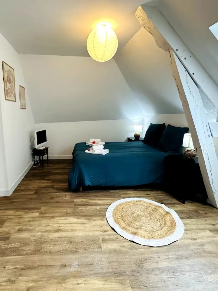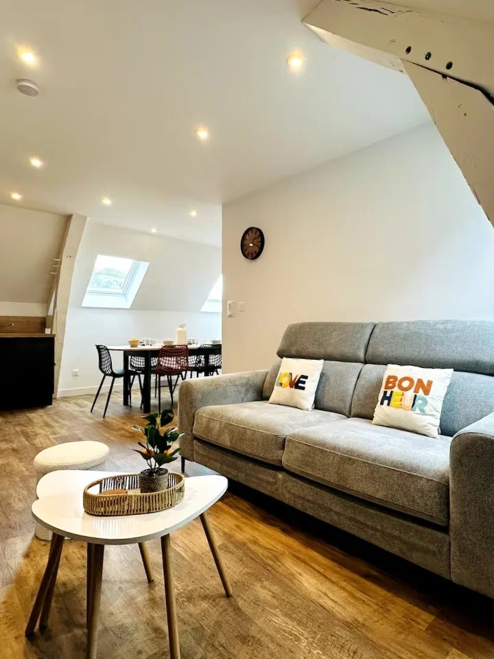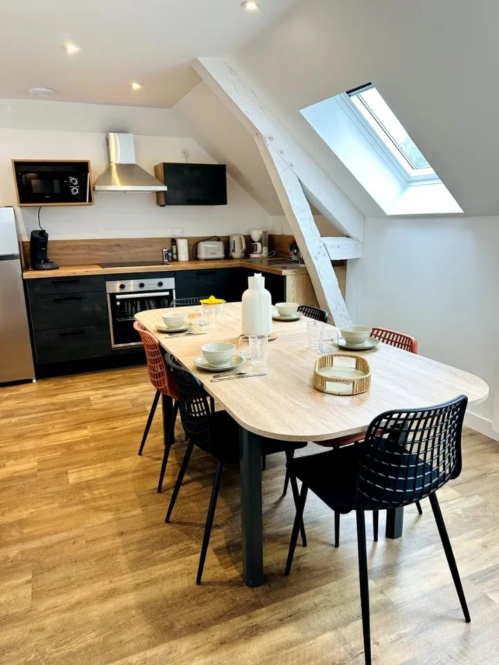 Installez-vous dans un logement unique qui mêle authenticité et confort moderne. Avec ses poutres apparentes et son atmosphère chaleureuse, cet appartement est idéal pour un séjour inoubliable à Fougères.